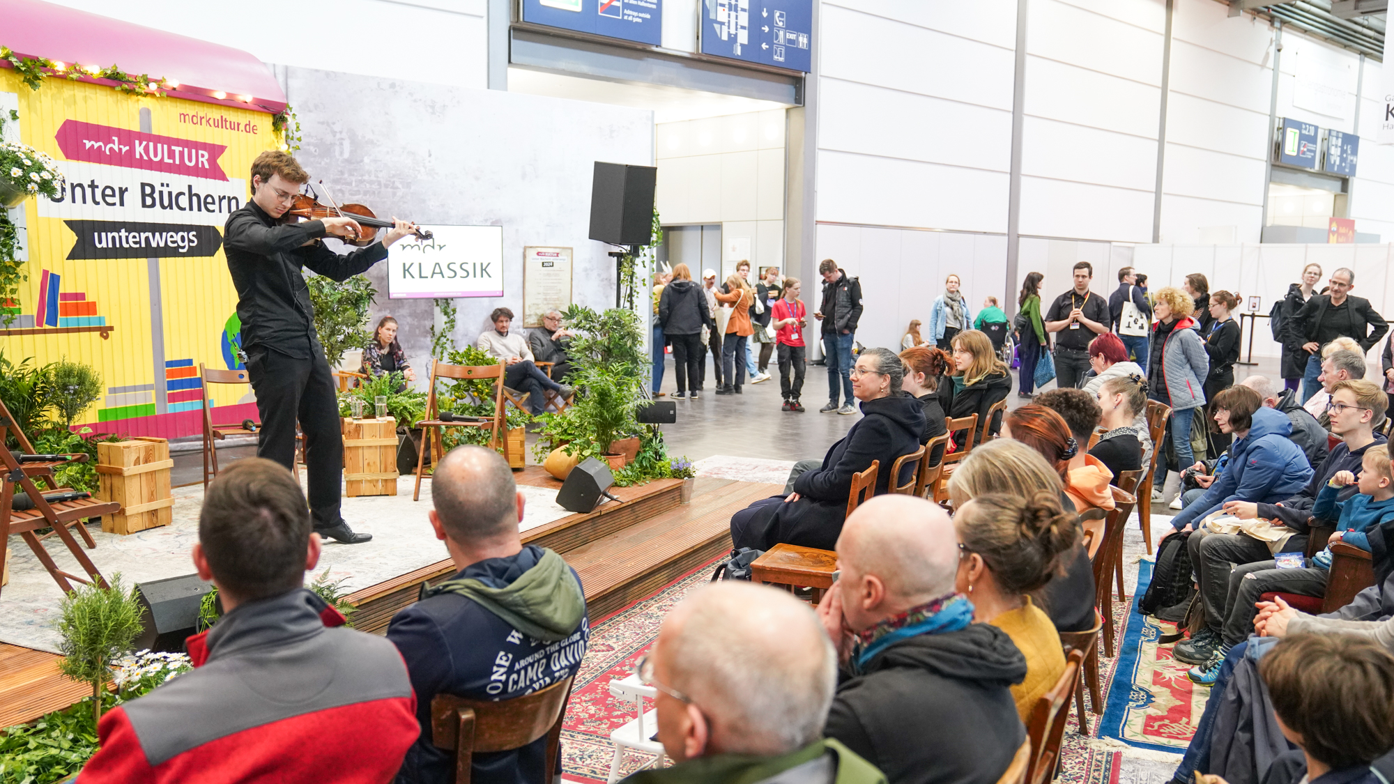 MDR KULTUR macht mit seinem Bücherwagen in Halle 2 Station und wird zum Treffpunkt der mitteldeutschen Literaturszene. Auf der MDR KULTUR-Bühne läuft täglich von 10.30 Uhr bis 17 Uhr ein vielfältiges Programm in entspannter Lounge-Atmosphäre. Autorinnen, Autoren und weitere Büchermenschen aus dem MDR-Sendegebiet berichten über ihre aktuellen Projekte. Täglich von 10.30 Uhr bis 11 Uhr stellen sich zudem verschiedene MDR-Redaktionen den Fragen des Publikums.