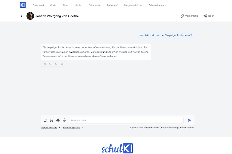 Wir bieten datenschutzkonforme KI-Tools speziell für Schulen: Mit unseren vielseitigen Chat-KIs ermöglichen wir sichere Dialoge im Klassenzimmer für Lehrkräfte, Schüler:innen und die Schulverwaltung.