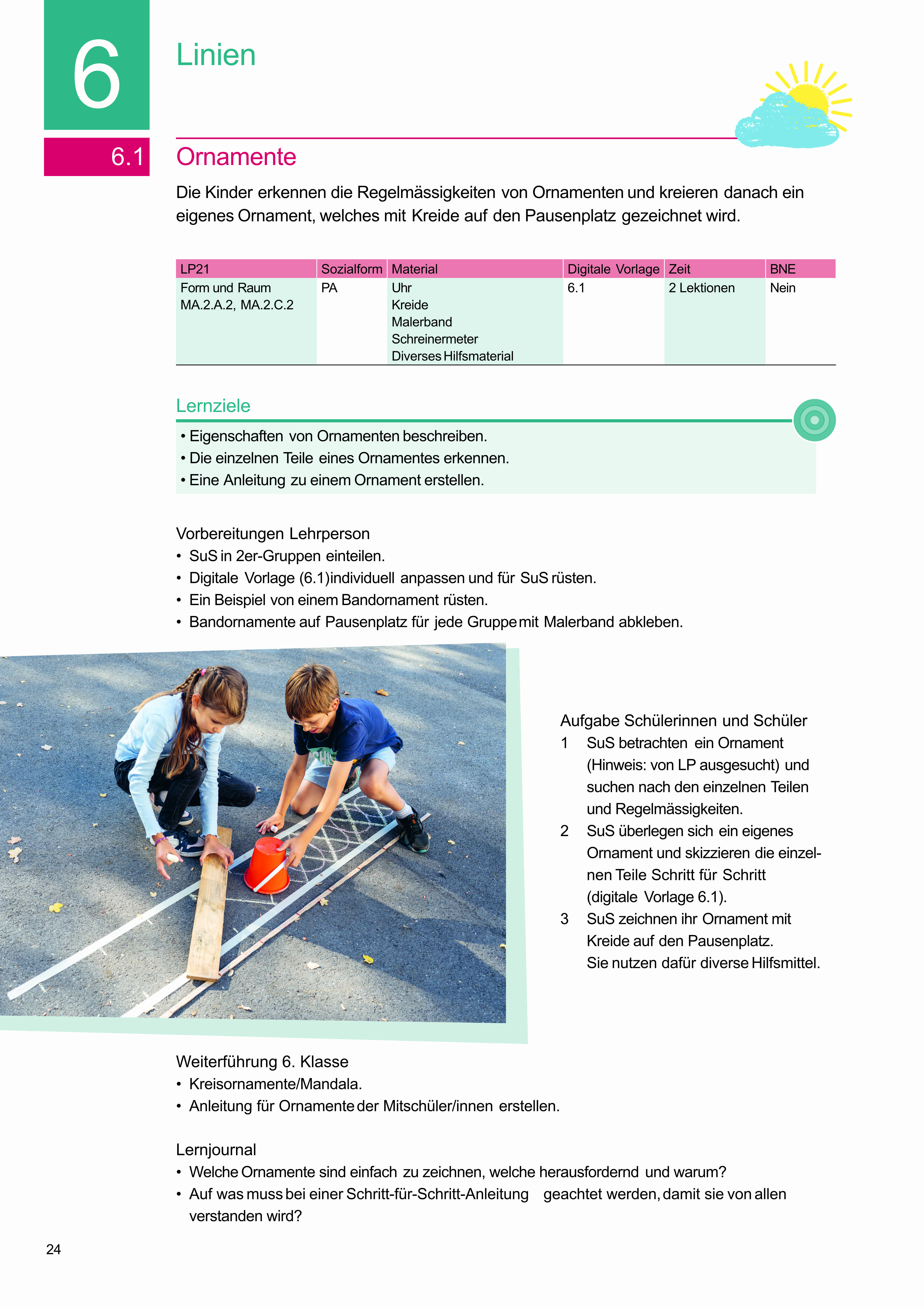 für sinnvolle, vertiefte und handlungsorientierte mathematische Reflexions- und Lernprozesse. Das Lehrmittel ermöglicht es, den Mathematikunterricht draussen qualitativ hochwertig aufzubauen und durchzuführen.
