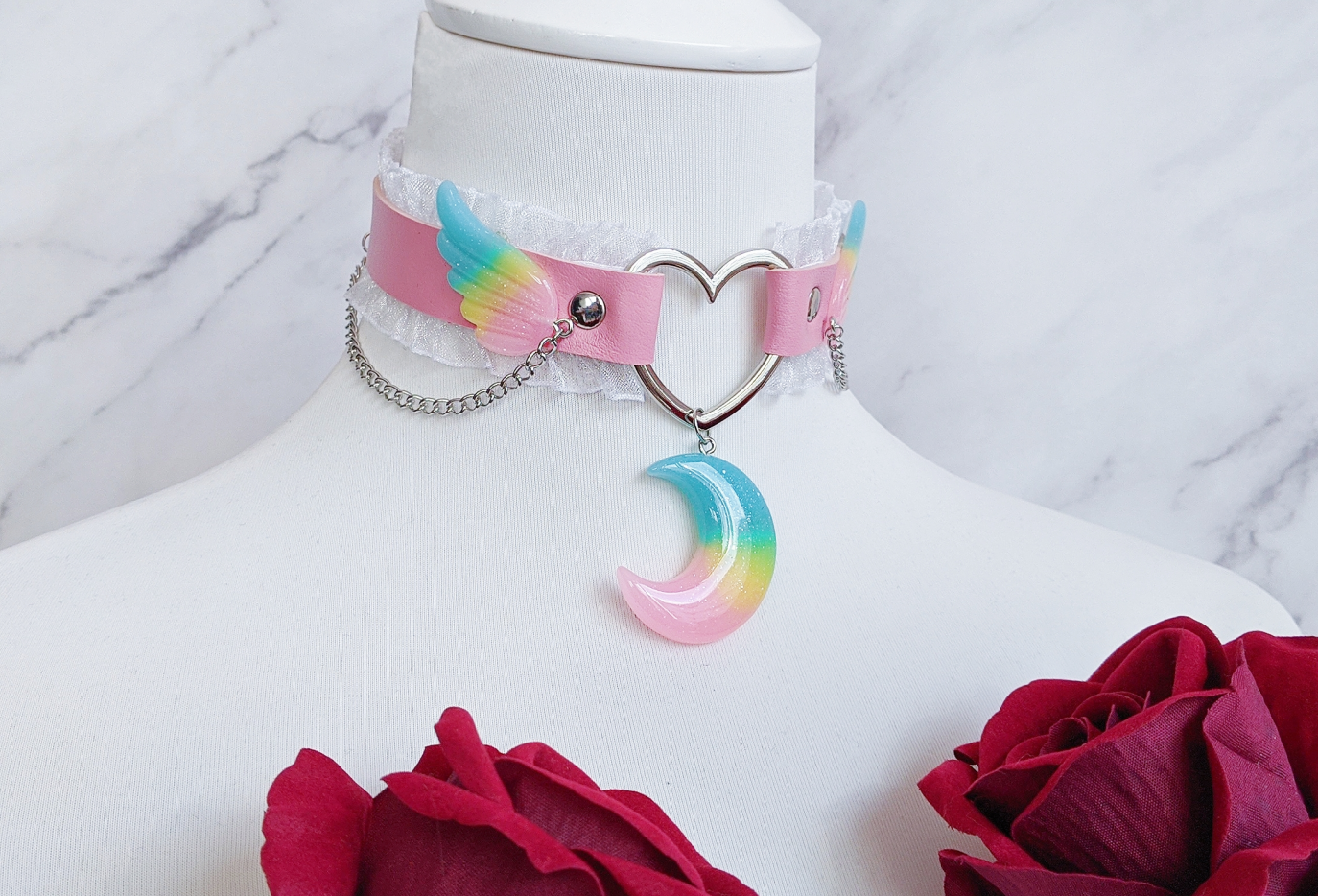 Veganes Pastel goth Choker Halsband rosa regenbogen