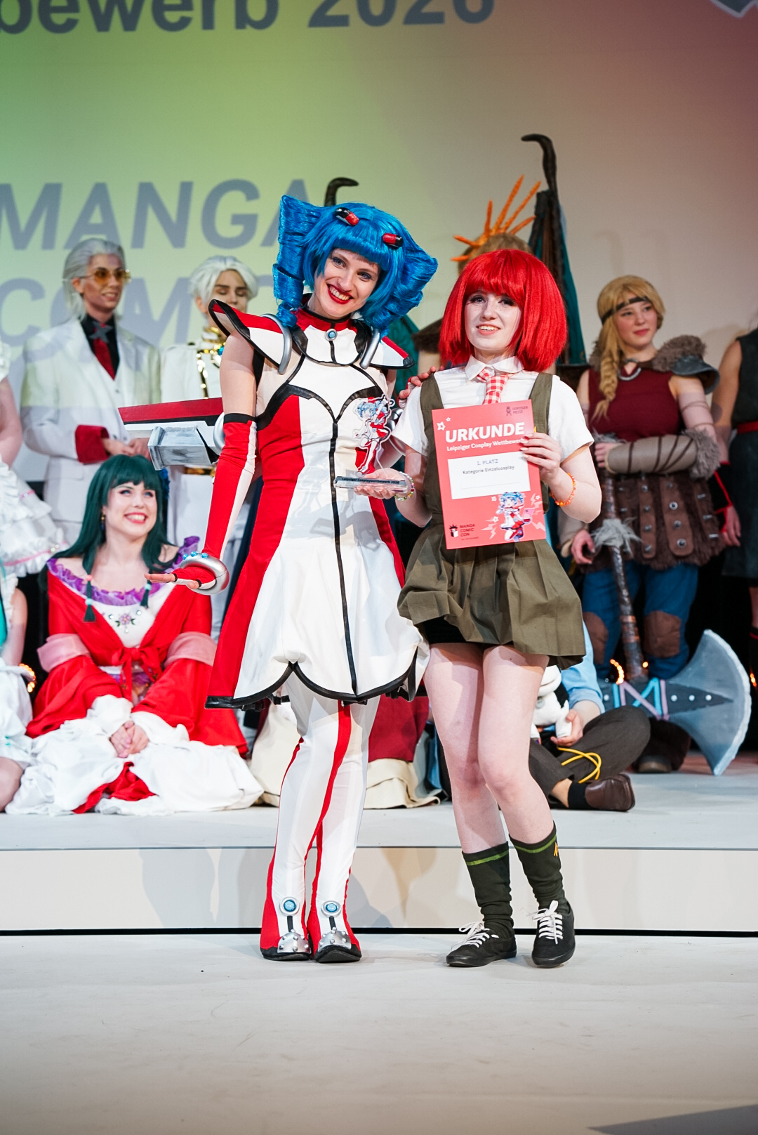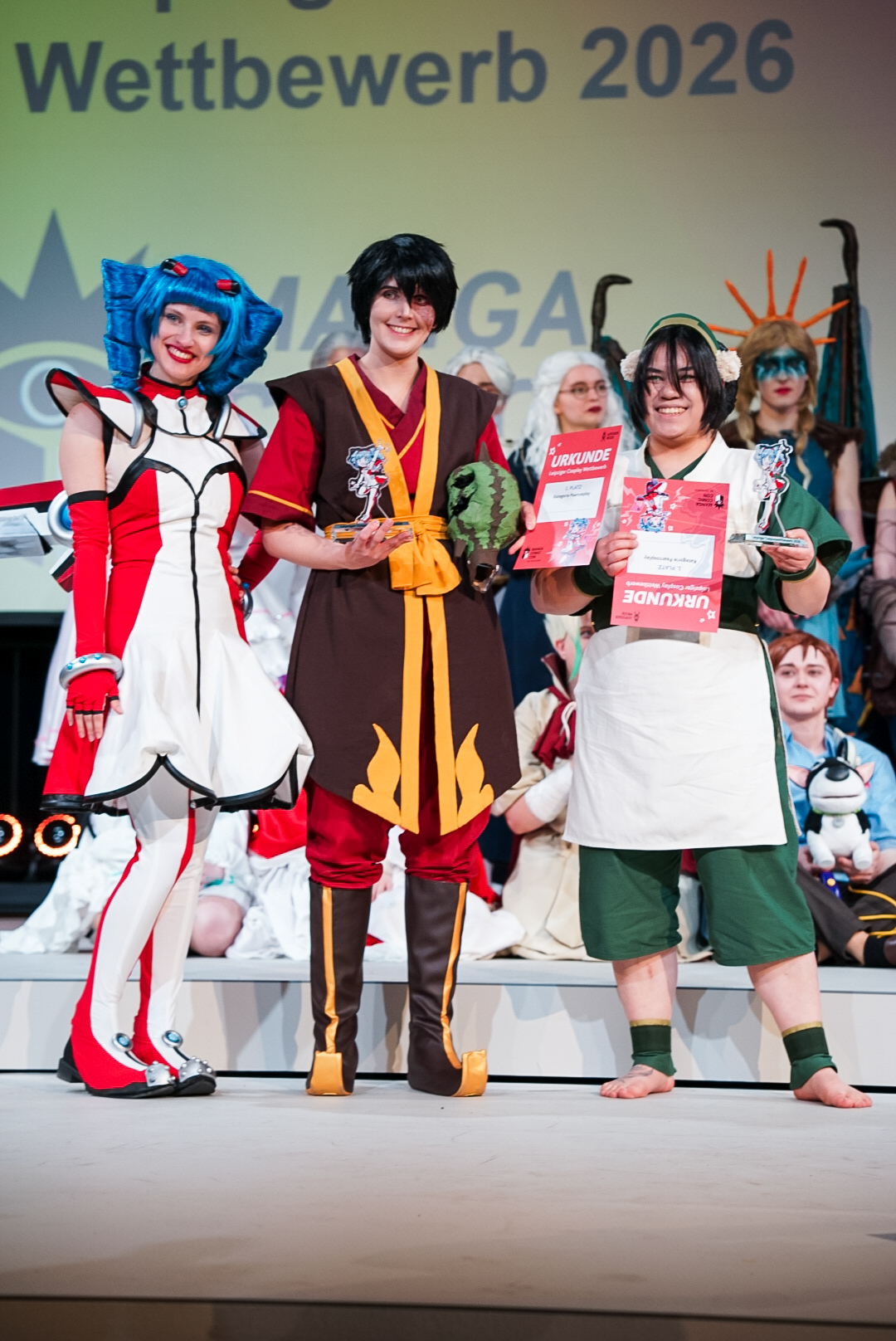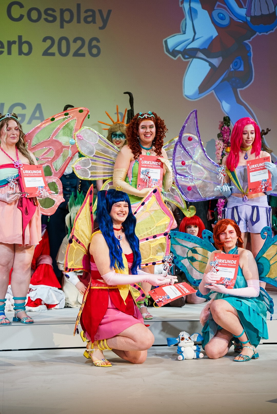 Seht hier die Siegerehrung der Plätze 1 bis 3 in den Kategorien Einzel, Paare und Gruppe des Leipziger Cosplay Wettbewerbs 2026.