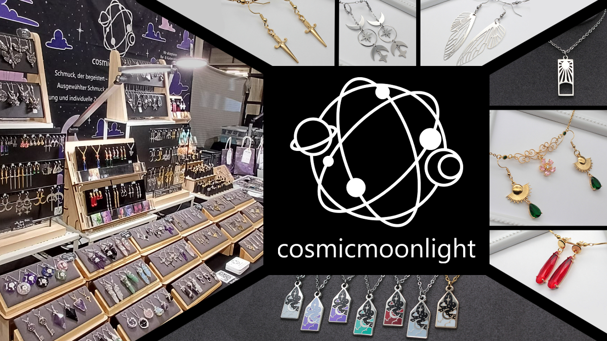 Visit me at my booth and browse through my wide range of cosmic jewelry. Dive into chains, earrings, rings, pins, and unique, self-designed pieces—everything carefully selected. Whether Gothic, Witchy, alternative, anime-inspired, or everyday-ready, different style worlds are reflected in each piece. Follow me on Instagram "_cosmicmoonlight_" to get a preview of what awaits you on site. I’m looking forward to meeting you at my booth <3