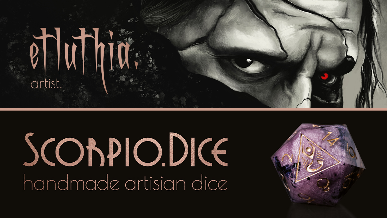 Since 2020, I also create 100% handmade PnP dice under the name scorpio.dice, which I sell online as well as at events such as trade fairs and conventions. Every single die is poured, sanded, polished and inked by myself - with an eye for detail. No set is truly like another, making them unique little works of art that are looking for a new home, in which they will become part of great adventures!