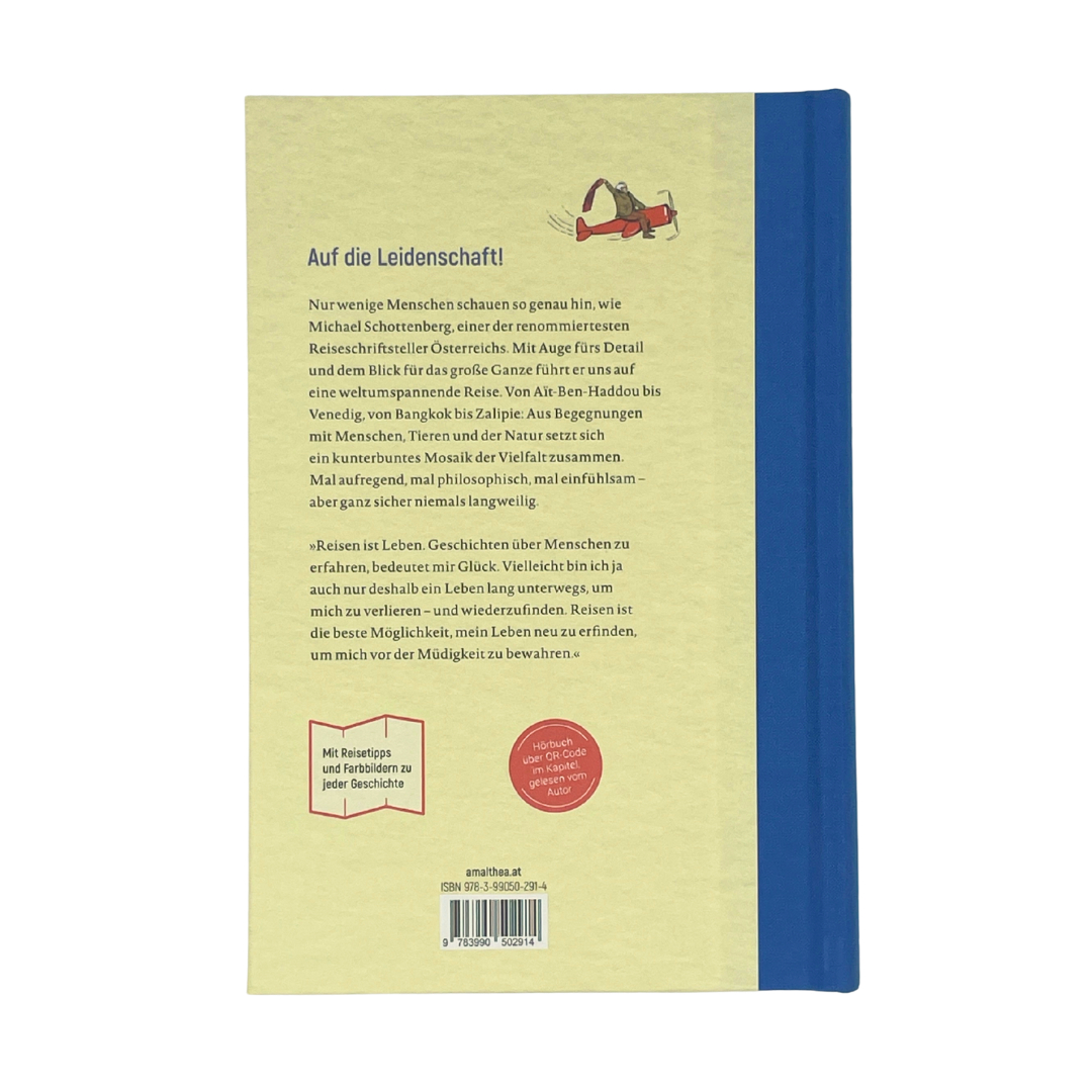Nur wenige Menschen schauen so genau hin wie Michael Schottenberg, einer der renommiertesten Reiseschriftsteller Österreichs. Mit Auge fürs Detail und dem Blick für das große Ganze führt er uns auf eine weltumspannende Reise. Von Aït-Ben-Haddou bis Venedig, von Bangkok bis Zalipie: Aus Begegnungen mit Menschen, Tieren und der Natur setzt sich ein kunterbuntes Mosaik der Vielfalt zusammen. Mal aufregend, mal philosophisch, mal einfühlsam – aber ganz sicher niemals langweilig.