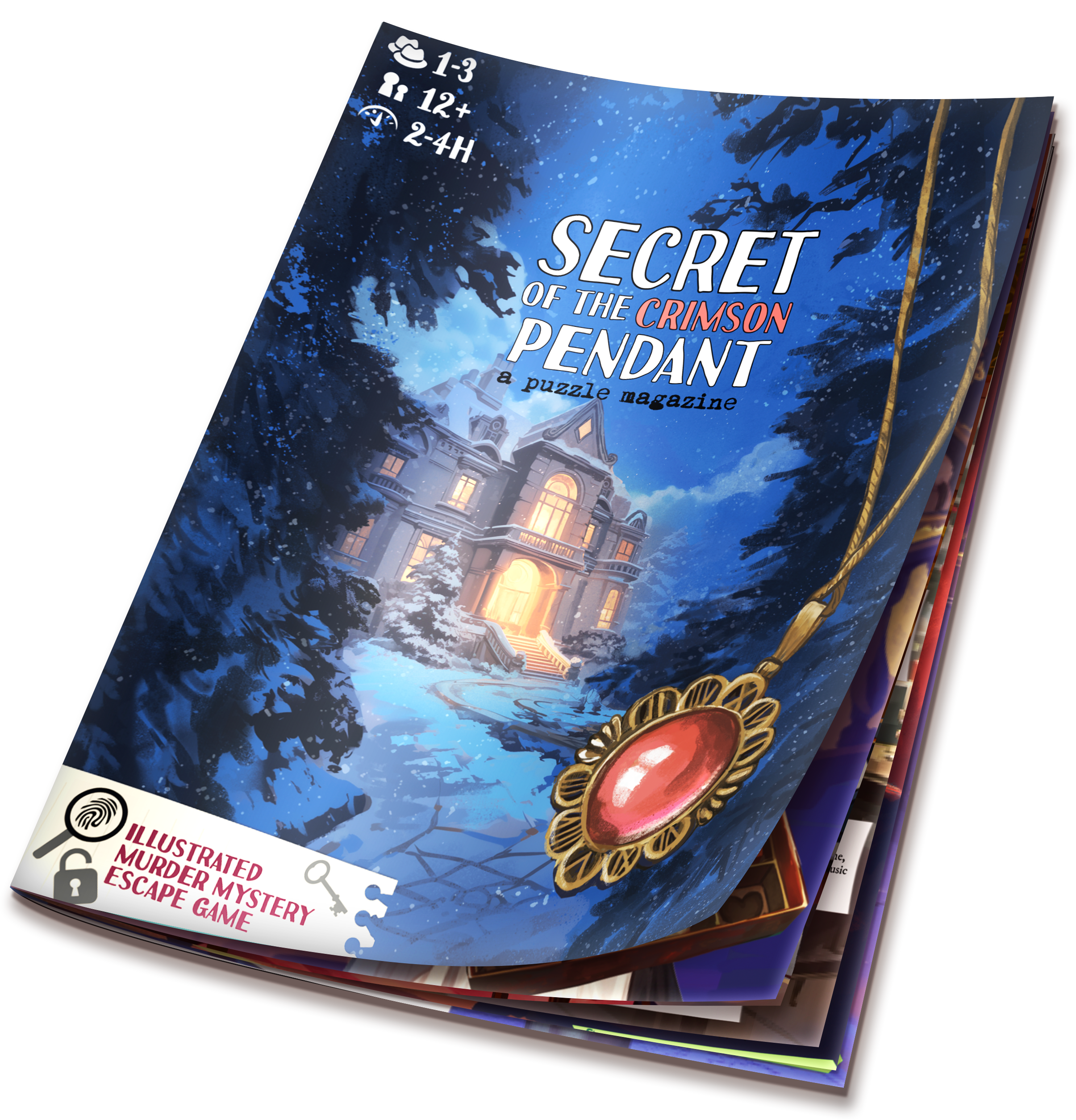 It’s late December. You are hired as a private detective to investigate the disappearance of a long lost family heirloom, the Crimson Pendant. The investigation takes a dark turn when the pendant is found on a murder victim. To make matters worse, a fierce snowstorm hits the estate. You are now stranded in a snowstorm, with a killer.